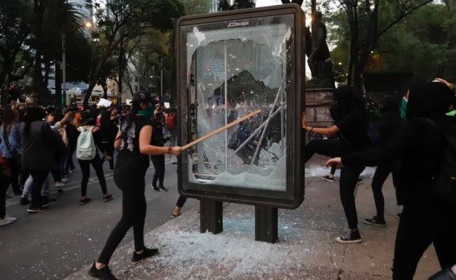 Se indicó que la mayor parte de las asistentes a la marcha se manifestaron de forma pacífica, sin embargo, durante la ruta se identificó un grupo de personas con el rostro cubierto que ocasionaron daños en algunos parabuses de Paseo de la Reforma, así como pintas en diversos monumentos; incluso señalaron que en algunos casos intentaron prender fuego, mismo que fue controlado de manera inmediata por las policías capitalinas.