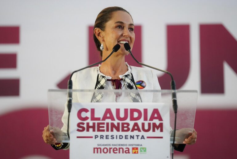 La abanderada de la coalición Sigamos Haciendo Historia registra un 56% de las preferencias efectivas; le sigue Xóchitl Gálvez con el 32.2% de la intención del voto, y Jorge Álvarez Máynez con 11.8%.