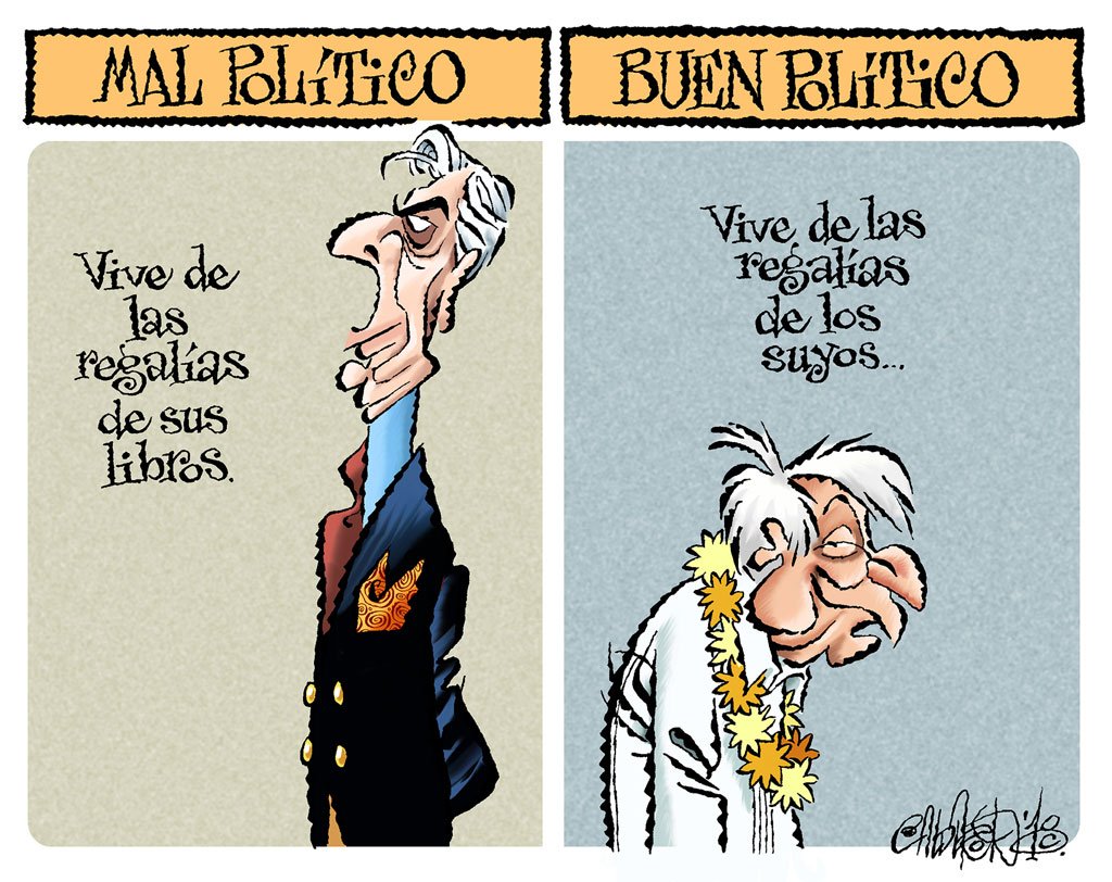 López Obrador indicó que al ver el cartón se acordó que Clemente Orozco pintaba a Porfirio Díaz como un gigante y a Francisco I. Madero como pigmeo. “Guardadas las proporciones, no descarto que al monero se le quite lo retrógrada y se vuelva liberal. Ojalá” remató en su mensaje publicado en redes sociales.