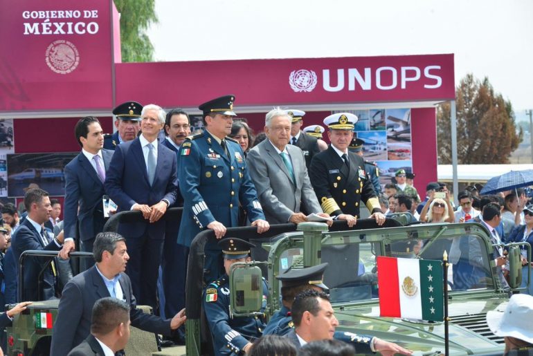 El Gobernador del Estado de México, Alfredo Del Mazo, acompañó este miércoles al presidente Andrés Manuel López Obrador (AMLO) en la inauguración de la Feria Aeroespacial México 2019, en la Base Militar Santa Lucía.