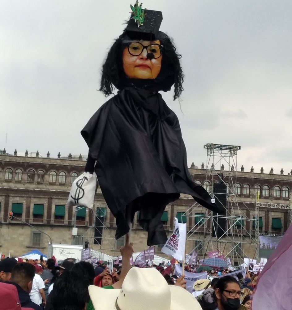 Y es que durante la concentración del sábado pasado, un grupo de asistentes quemaron una piñata que tenía la cara de la ministra.