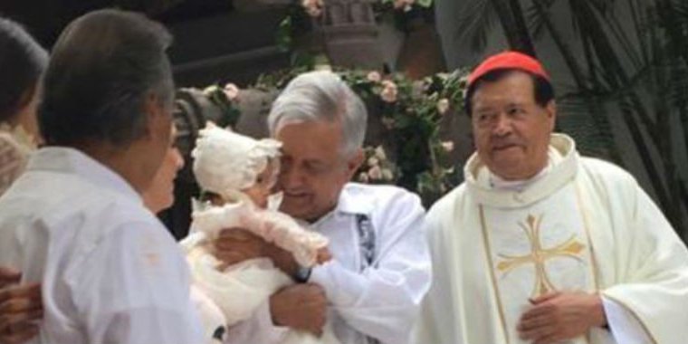 Y es que, el columnista de El Universal, Salvador García Soto, difundió el fin de semana en Twitter una imagen donde el mandatario carga a una niña y se encuentra con su esposa Beatriz Gutiérrez Müller y el cardenal Norberto Rivera. De acuerdo con el articulista, López Obrador fungió como padrino, hecho que confirmó hoy en la mañana.