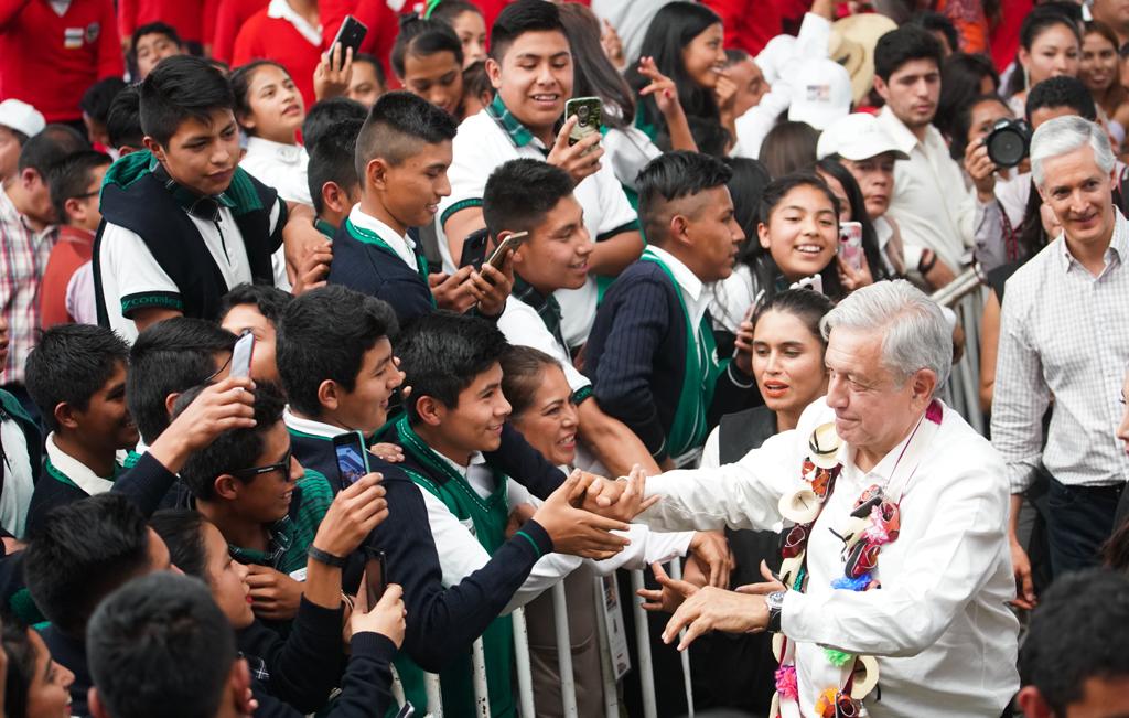 El presidente Andrés Manuel López Obrador encabezó este sábado la entrega de Becas “Benito Juárez” Educación Media Superior a estudiantes en el Estado de México.
