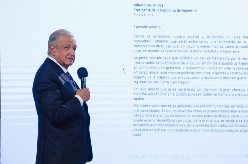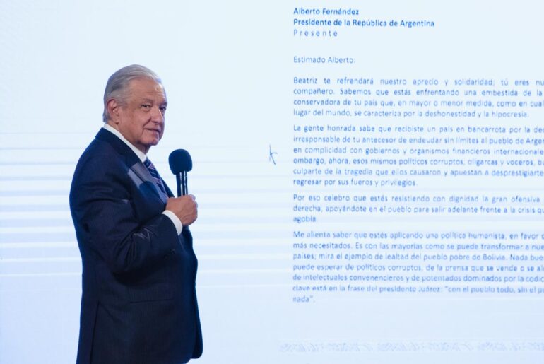 “Sabemos que estás enfrentando una embestida de la élite conservadora de tu país que, en mayor o menor medida, como en cualquier lugar del mundo, se caracteriza por la deshonestidad y la hipocresía”, añadió AMLO en la carta.