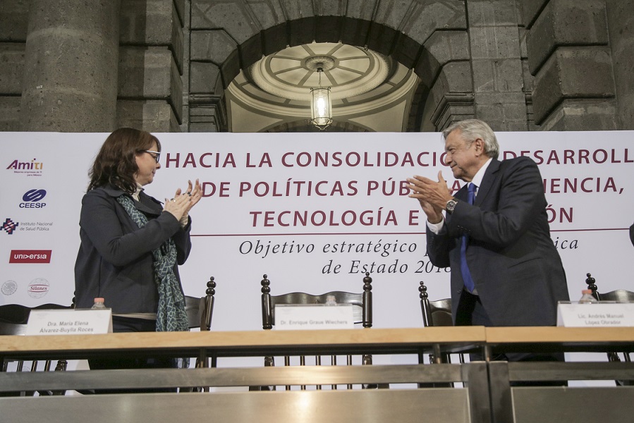 Las declaraciones las realizó al participar en la entrega del documento “Hacia la consolidación y desarrollo de políticas públicas en ciencia, tecnología e innovación. Objetivo estratégico para una política de Estado 2018-2024”, que se llevó a cabo en Palacio de Minería y en donde participó el rector de la UNAM, Enrique Graue.