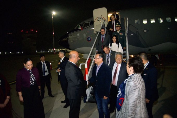📸 En @aifaaero, el subsecretario @maximilianoreyz, la directora ejecutiva de @AMEXCID, @LauraElenaCC, y autoridades de @SRE_mx dieron la bienvenida al presidente de Colombia, @petrogustavo, en nombre del @GobiernoMX y con motivo del inicio de su visita oficial a México.