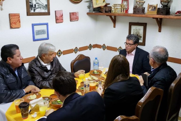 El senador y exgobernador de esa entidad publicó una fotografía en su cuenta de Twitter para presumir su desayuno. En la imagen aparecen Monreal, AMLO y el futuro secretario de Comunicaciones y Transportes, Javier Jiménez Espriú; además de otras dos personas del equipo del tabasqueño. También se aprecia que Andrés Manuel acompañó sus gorditas con un jugo de naranja y agua, lo mismo que Ricardo Monreal.