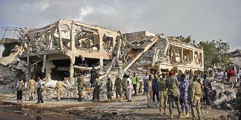El ataque con camión bomba se produjo el sábado a media tarde en la intersección de una arteria muy concurrida del distrito de Hodan, un barrio comercial muy concurrido de la capital donde hay muchos negocios y hoteles. Los edificios y vehículos situados cerca resultaron muy dañados por la fuerte explosión, que dejó numerosos cuerpos calcinados o despedazados.