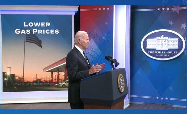 “Podemos bajar el precio de la gasolina y dar a las familias un poco de alivio”, dijo Biden en un discurso en la Casa Blanca.