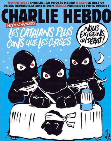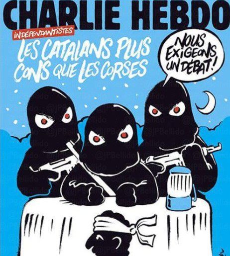 La crisis por la que atraviesa Cataluña y su deseo por independizarse se ha trasladado a varios ámbitos, y ahora es la revista satírica francesa Charlie Hebdo, quien retoma el tema para ilustrar su más reciente portada, misma en la que se lee: “Los catalanes, más tontos que los corsos”.
