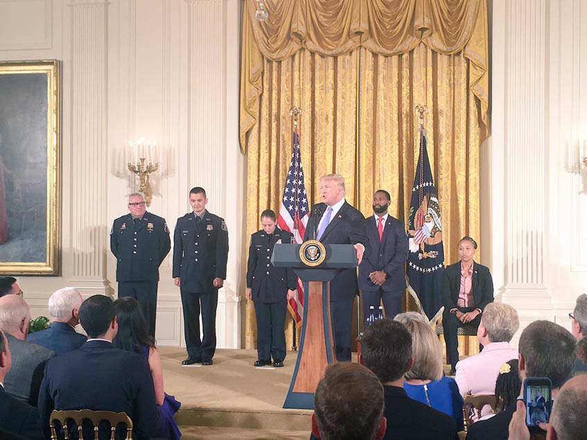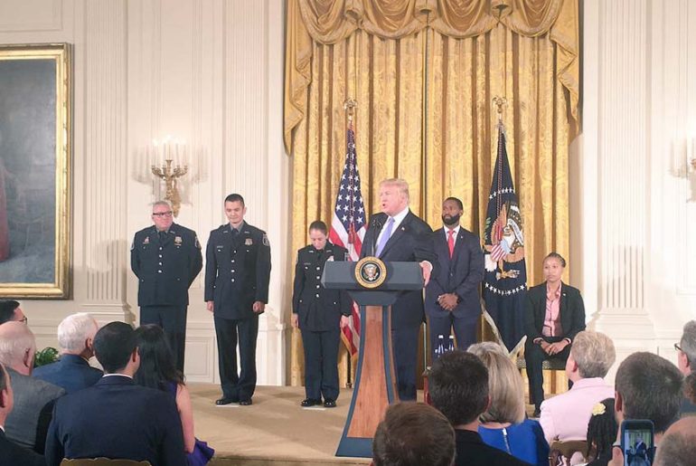 A través de su cuenta de Twitter, el presidente Donald Trump dijo que la única manera de detener las drogas, las pandillas, la trata de personas, los elementos criminales y mucho más de lo que entra al país es con un muro o barrera. Dijo que el uso de drones y todo el resto son maravillosos, pero no son más que un montón de diversión.