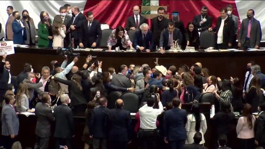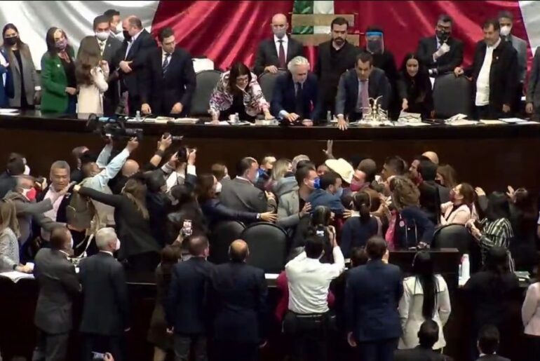Este mismo tema, llevó a que horas más tarde, cerca de la medianoche, diputados del bloque de la 4T se enfrentaran a gritos y hasta golpes con diputados de la oposición. Esto llevó a que el presidente de la Mesa Directiva, Sergio Gutiérrez Luna, decretara un primer receso.