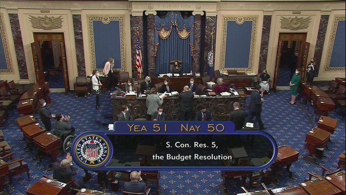 U.S. Senate APPROVES COVID-19 relief budget resolution, 51-50.