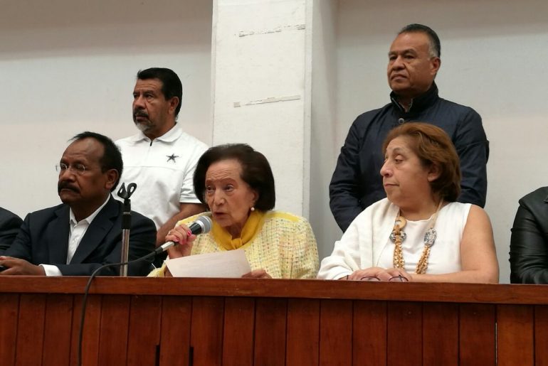 Integrantes del Partido de la Revolución Democrática (PRD) ofrecieron una conferencia de prensa esta tarde, en donde en voz de Ifigenia Martínez fundadora del partido, hicieron un llamado para la reconciliación de las izquierdas de cara a la elección presidencial del 2018.
