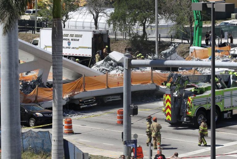 Varias personas murieron esta tarde al derrumbarse un puente para peatones sobre una calle de Miami, en Estados Unidos, que conectaba el paso con la zona donde se encuentra situada la Universidad Internacional de Florida (FIU).