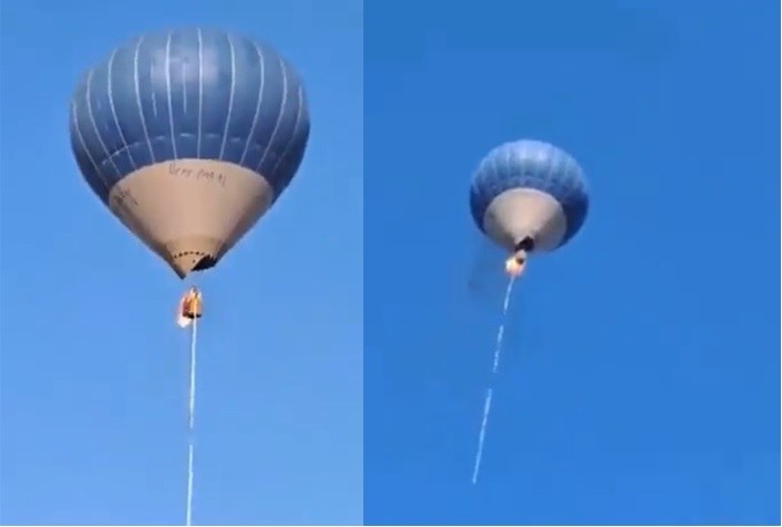 Testigos publicaron en redes sociales videos del accidente del sábado, en los que se aprecia la cesta del globo en llamas y cómo sus pasajeros se lanzan al vacío.