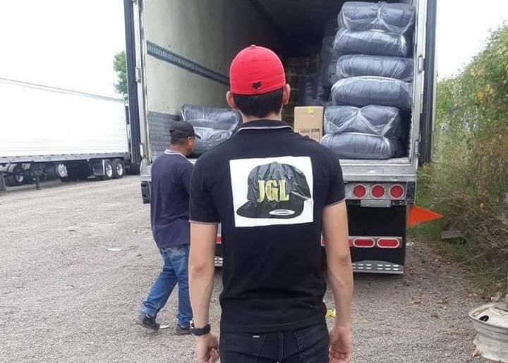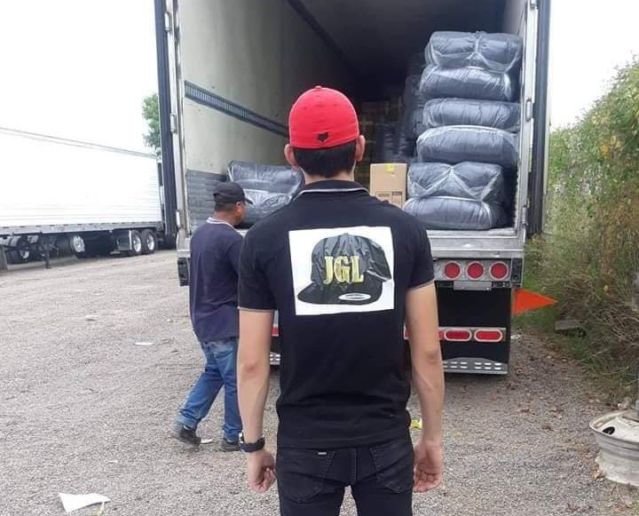 Según los reportes en redes, camiones cargados con los apoyos llegaron el pasado 20 de octubre a la zona, flanqueados por camionetas de lujo. Los camiones y los apoyos estaban rotulados con un logotipo de una gorra negra y en letras doradas las iniciales ‘JGL’, en referencia a Joaquín Guzmán Loera.