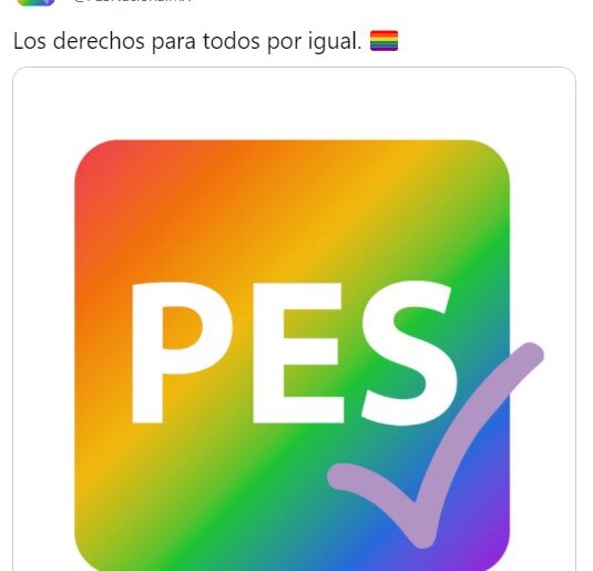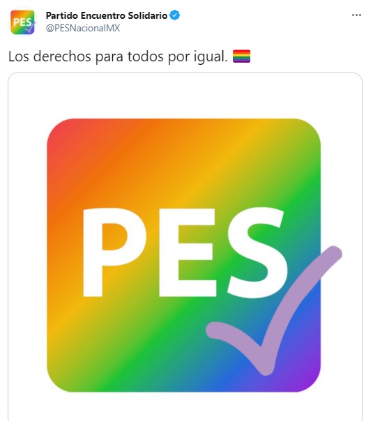 Los mensajes en apoyo a la comunidad LGBT comenzaron a aparecer desde la tarde de ayer en la cuenta de Twitter del PES, la mayoría acompañados de una bandera arcoíris.