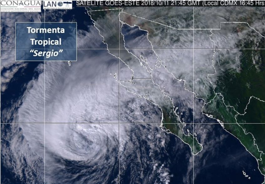 Según el último reporte, a las 13:00 horas “Sergio” se degradó a depresión tropical y se localiza en tierra, aproximadamente a 45 kilómetros (km) al norte de Guaymas y a 75 km al sur de Hermosillo, ambas poblaciones de Sonora,