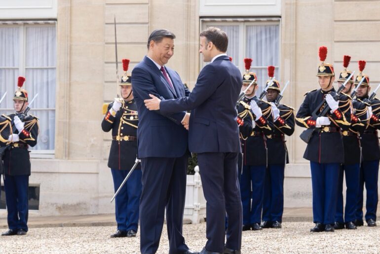 Sobre Ucrania, Macron agradeció a Xi “el compromiso de las autoridades chinas” manifestado en otras ocasiones “de no vender armas a Moscú y a controlar estrictamente las exportaciones de tecnologías de doble uso”.