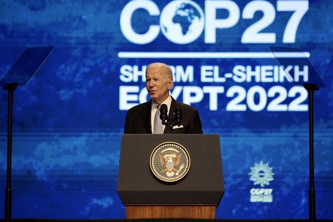 “Nos estamos esforzando en hacer lo que nos toca para evitar un infierno climático”, dijo Biden ante representantes de casi 200 países reunidos en Egipto.