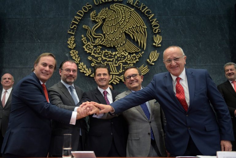 Hizo un especial agradecimiento a Jesús Seade Kuri, integrante del equipo de transición, pues dijo, que lejos de haber tenido diferencia, pudo aportar acentos entre lo que el Gobierno de la República venía negociando y la visión que tiene el próximo Gobierno. Indicó que las coincidencia permitieron que México se mostrara ante Estados Unidos y Canadá en un solo frente, “con un solo rostro de dos Gobiernos, uno saliente y otro por entrar”.