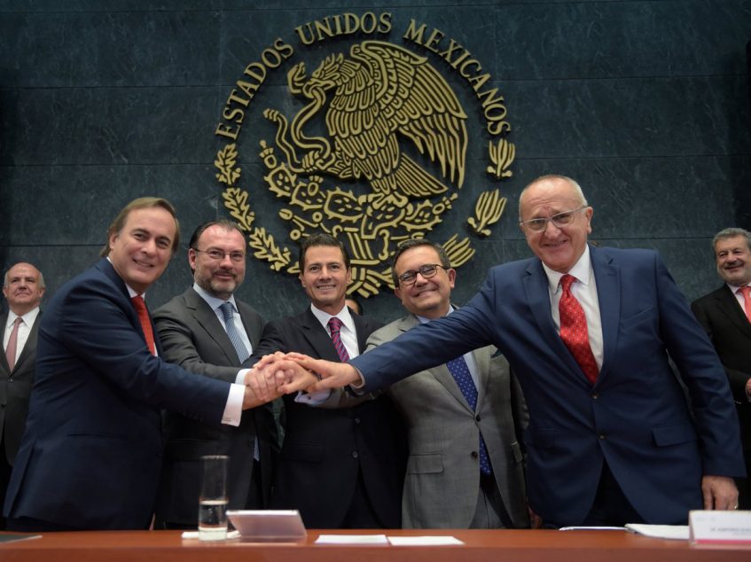 Durante el mensaje que ofreció, dijo que el proceso de negociación fue arduo y complejo. “No es un logro individual, es un logro de equipo, es un logro de todos; fue una tarea compleja”, reconociendo a los secretarios de Economía, Ildefonso Guajardo; Relaciones Exteriores, Luis Videgaray; del Trabajo y Previsión Social, Roberto Campa Cifrián; de Agricultura, Baltazar Hinojosa Ochoa; a Jesús Seade, representante del equipo de transición del gobierno electo, así como a empresarios que conformaron el llamado “cuarto de junto”.
