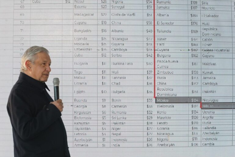 El mandatario dijo que se debe de tener presente que el salario en México se desplomó durante el periodo neoliberal, y por eso, es ahora de los salarios más bajos en todo el mundo. Aseguró que es urgente recuperar la capacidad de compra del salario mínimo.
