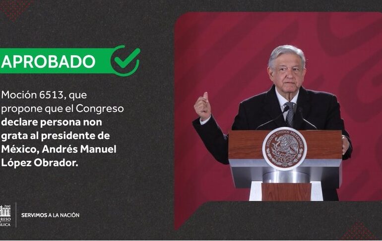 Sin embargo, López Obrador restó importancia a esta moción, ahora aprobada en el Pleno del Congreso peruano, y dijo que para él era “un timbre de orgullo que los que actúan de esa manera me declaren non grato”.