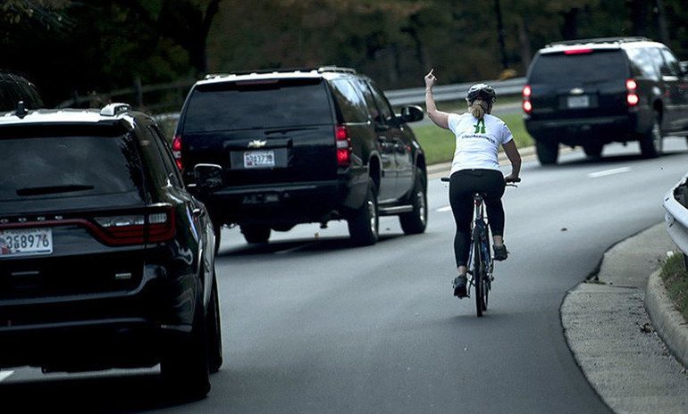 El pasado 28 de octubre, la fotografía de una mujer que mostró el dedo medio al Presidente Donald Trump se hizo viral en las redes sociales. La situación ocurrió mientras el mandatario se dirigía al Club de Golf Nacional Trump situado cerca del río Potomac, a unos 40 kilómetros al noroeste de la Casa Blanca.