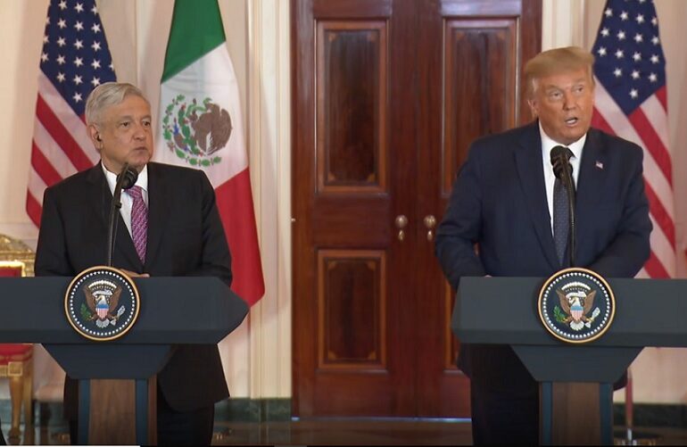 Previo a la cena que Trump ofreció en honor de López Obrador, los mandatarios ofrecieron un breve mensaje, en que el AMLO indicó que México busca mantener buenas relaciones con Estados Unidos en lo económico, en lo comercial, en lo social y en lo cultural.