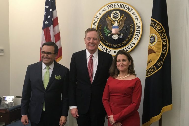 La ministra de Relaciones Exteriores de Canadá, Chrystia Freeland, se reunirá el día de mañana en Washington con el representante comercial de Estados Unidos, Robert Lighthizer, para seguir con las conversaciones sobre la renovación del Tratado de Libre Comercio de América del Norte (TLCAN).
