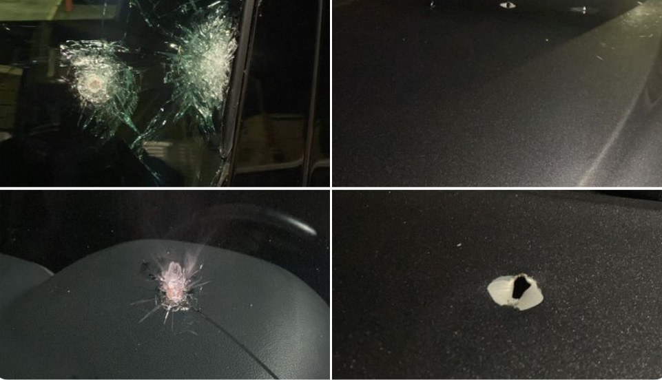 A las 11:10 pm a 200 metros de mi casa dos personas en una motocicleta me dispararon, al parecer con la clara intención de matarme. Me salvó el blindaje de mi camioneta que yo manejaba y he enterado del asunto a las autoridades. CGL