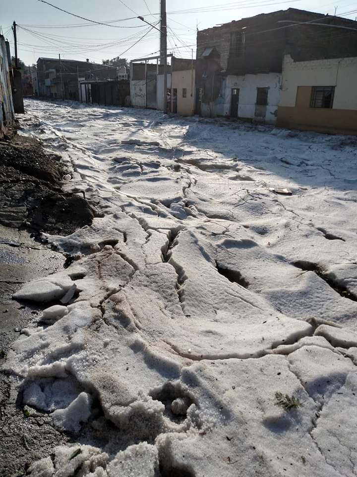 Adicional se reportaron caída de árboles, postes y diversos desperfectos en la vía pública. En las viviendas, el granizo también se hizo presente, provocando encharcamientos e inundaciones.