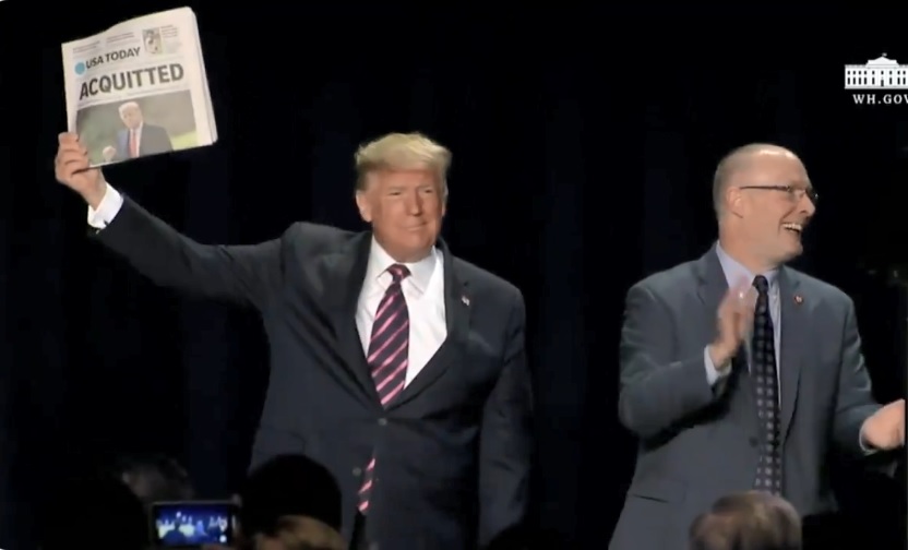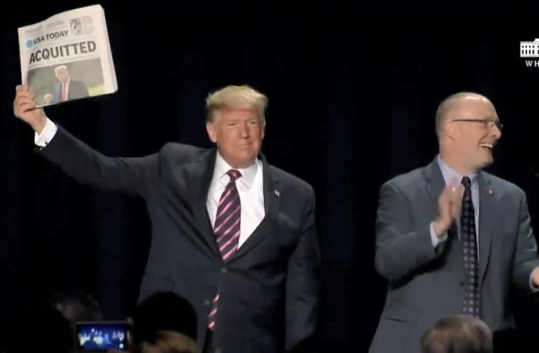Lejos de lo que pretendían los demócratas, Trump dijo que el juicio político logró unir al partido republicano y hacer que el apoyo de los estadounidenses a él y a los republicanos esté en “su cifra más alta” de los últimos años.