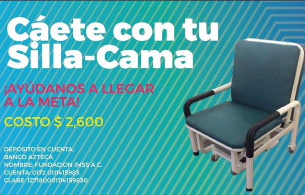 Invito a la familia @Tu_IMSS y población en general a sumarse a la campaña de @Fundacion__IMSS para adquirir sillas-camas.