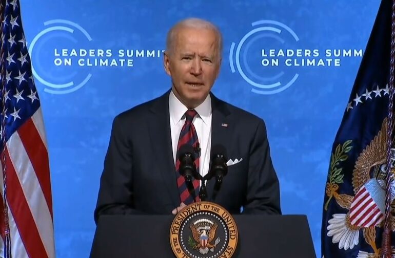 Biden y la vicepresidenta Kamala Harris inauguraron la cumbre del Día de la Tierra, Biden desde la Casa Blanca ante líderes mundiales, incluyendo los de China, Rusia, India, los estados del Golfo Pérsico, aliados europeos y asiáticos y naciones costeras e islas que lidian ya con los efectos de los cambios climáticos.