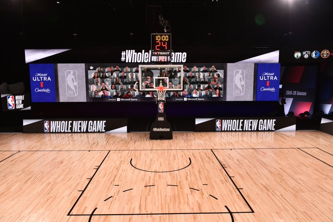 Microsoft Corp y la NBA dijeron que unieron fuerzas para poner espectadores “virtuales” en las tribunas de cada juego usando la aplicación Teams y pantallas gigantes.