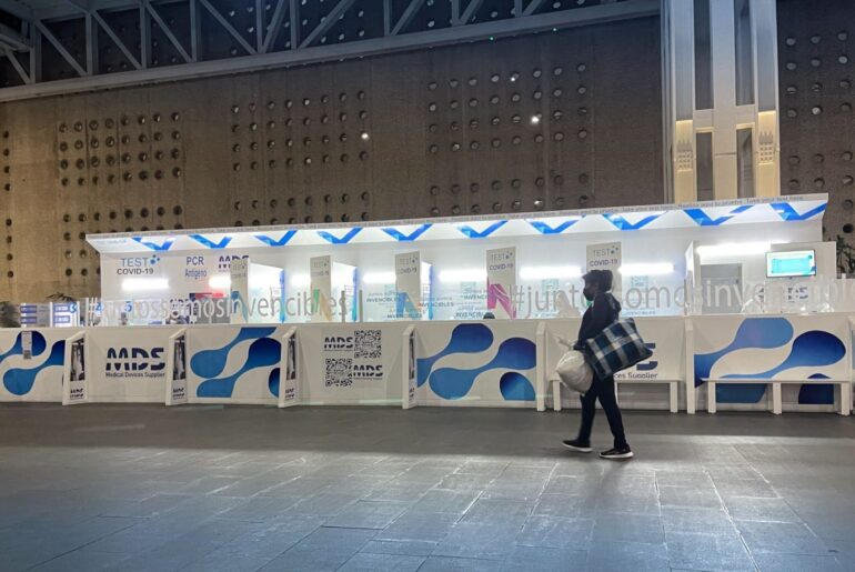 De los ocho módulos para la toma de prueba COVID-19 en el Aeropuerto Internacional de la Ciudad de México (AICM), cuatro subcontratan a laboratorios autorizados por el InDRE para procesar las muestras, mientras que uno más las analiza por sí mismo sin tener esa autorización sanitaria.
