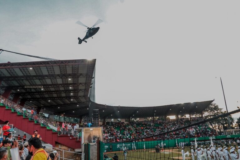 El diario Tabasco HOY dio a conocer a través de sus redes sociales un video en que muestra que la mascota del equipo de béisbol Olmecas de Tabasco, arribó al estadio de Macuspana a bordo de un helicóptero de la Secretaría de Marina (Semar).