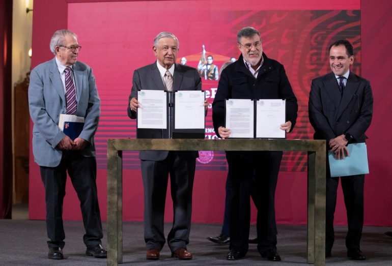 El presidente Andrés Manuel López Obrador (AMLO) encabezó este jueves la firma de un acuerdo de equivalencia para que pueda adquirir medicamentos en todo el mundo a través de la Oficina de las Naciones Unidas de Servicios para Proyectos (UNOPS). Señalaron que dicho acuerdo busca acabar con el desabasto de medicinas que hay en el país.