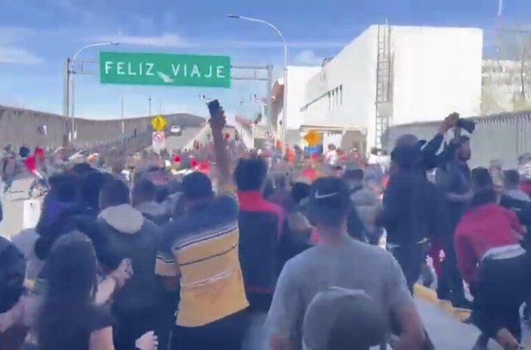 En una primera acción, los migrantes, centro y suramericanos en su mayoría, rebasaron un punto de revisión de autoridades de México, en el puente conocido como Paso del Norte, que limita las Ciudad Juárez y El Paso, Texas, Estados Unidos.