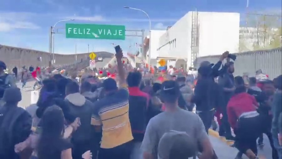 Crisis en la frontera. Cientos de migrantes venezolanos entran a la fuerza por un puente internacional entre #CiudadJuárez y El Paso, #Texas. Justo donde se conecta el centro de ambas ciudades fronterizas. #BorderCrisis #Venezolanos #Migration 🇺🇸🇲🇽|| pic.twitter.com/NBcI7zuASQ