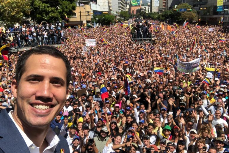 Al encabezar una manifestación en Caracas, Guaidó indicó que la idea de una “guerra” es promovida desde el régimen de Maduro “para intimidar.
