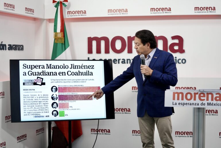 El dirigente nacional de Morena, Mario Delgado, hizo un llamado a los coahuilenses a realizar un voto útil y consciente el próximo 4 de junio, esto luego de presentar una encuesta en la que el candidato a la gubernatura, Armando Guadiana, se encuentra 9 puntos abajo del priista Manolo Jiménez.