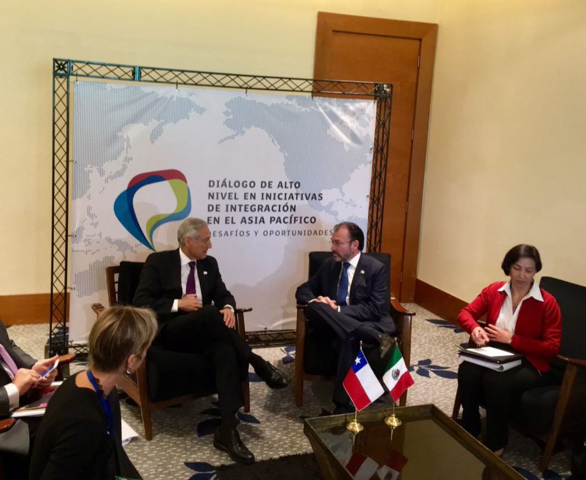 El canciller mexicano, Luis Videgaray, participa en una reunión de alto nivel convocada por Chile como presidente de turno de la Alianza del Pacífico en donde afirmó que la salida de Estados Unidos del Acuerdo Transpacífico de Cooperación Económica (TPP), le brinda a los países que aún lo conforman, alternativas y oportunidades de integración y comercio.
