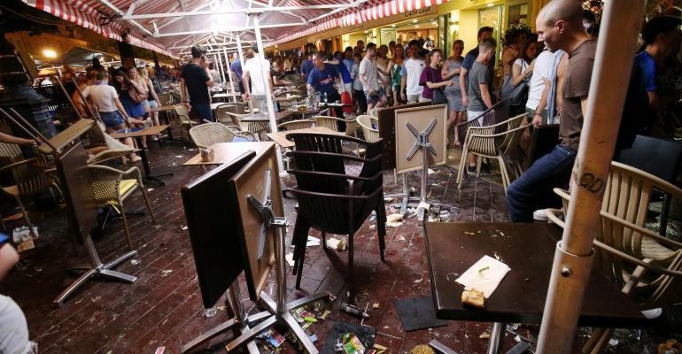 Las imágenes publicadas en las redes sociales permiten ver la estampida en el cours Saleya, en pleno centro de la ciudad, entre gritos, mientras mucha gente se refugiaba en bares y casas.