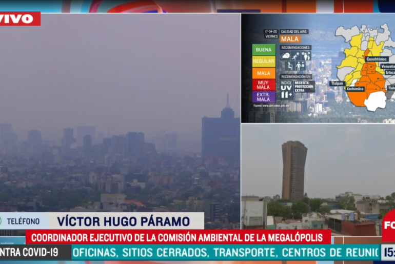 Ana Paula Ordorica entrevista a Víctor hugo Páramo, coordinador ejecutivo de la CAMe, quien explica porqué hay mala calidad del aire, pese a que muchas personas están en confinamiento por coronavirus.
