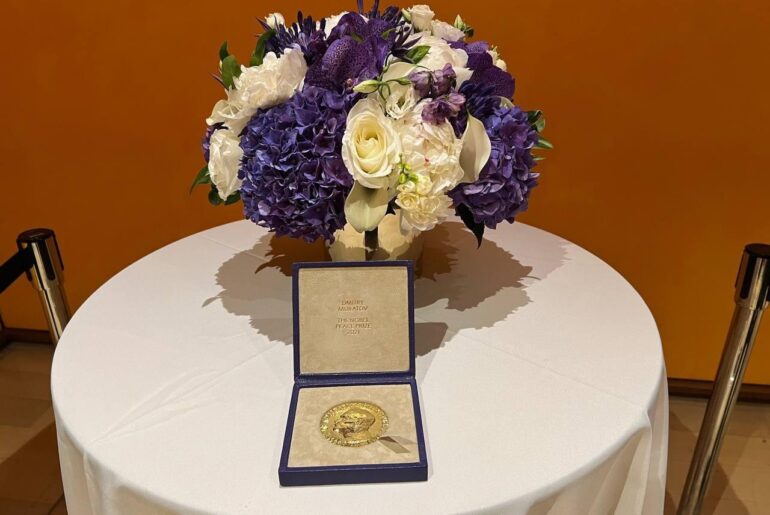 Muratov compartió el Nobel de la Paz el año pasado con la periodista Maria Ressa de Filipinas. Los dos periodistas, que recibieron cada uno una medalla, fueron reconocidos por sus respectivas luchas para preservar la libertad de expresión en sus países, a pesar de ser atacados, acosados e incluso recibir amenazas de muerte.