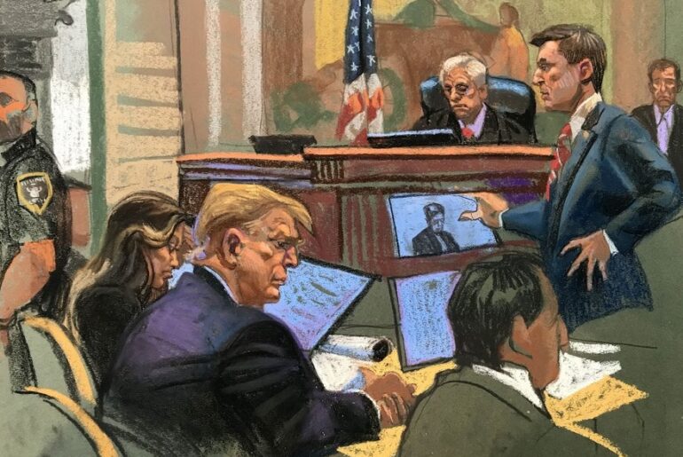 El favorito republicano rumbo al 2024, cuyo camino electoral puede complicarse por las causas judiciales que afronta en los próximos meses, estuvo acompañado en el banquillo por su hijo Eric y un equipo de abogados a los que escuchó atentamente en silencio, según medios locales.